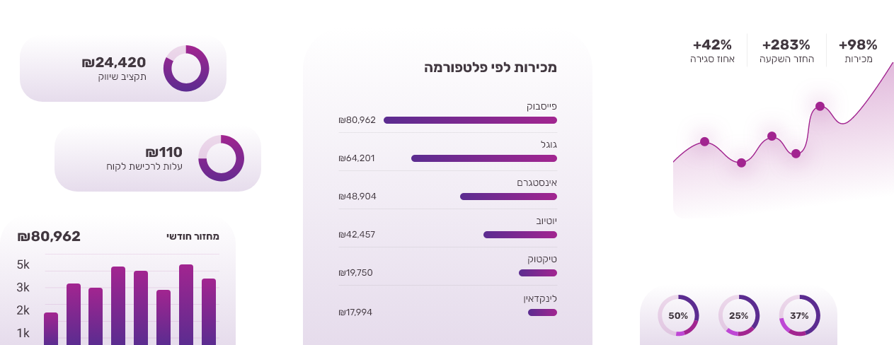 בזכות שנים של ניסיון אני יודעת להגיע בוודאות שהלקוח שלך לא קונה מוצר, הוא קונה הרגשה. בעולם של כל כך הרבה אפשרויות, שיווק נכון מתבצע רק אם בוחרים את הדרך החכמה ביותר, לא את הדרך הצודקת.