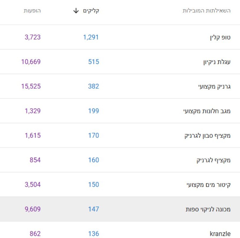 התוצאה: לאחר חצי שנה, הגענו לעמוד ראשון בגוגל בכמה ממילות המפתח הכי חזקות ורלוונטיות של העסק כמו "גרניק מקצועי", "מכונה לניקיון ספות", "עגלות ניקיון" ועוד.